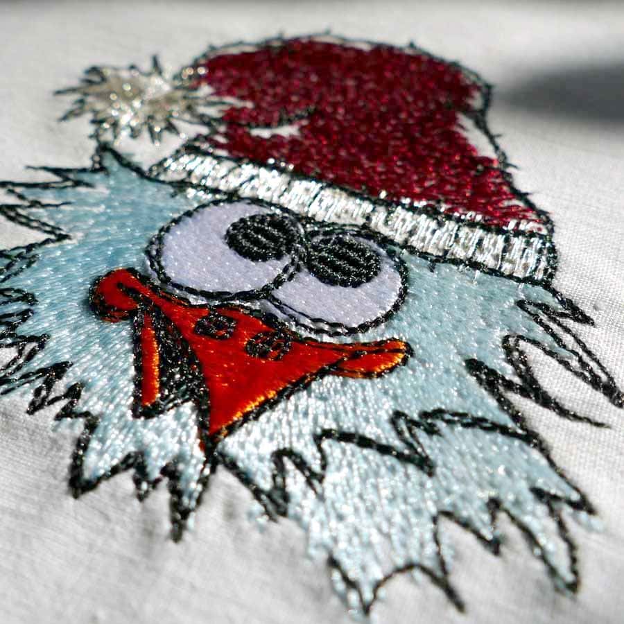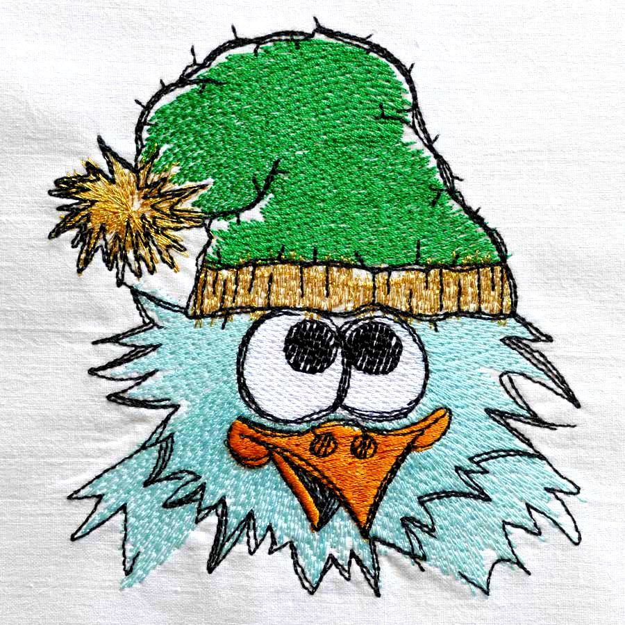 Doodle bird with hat, a fun embroidery file for not only for Christmas. Available in two sizes.