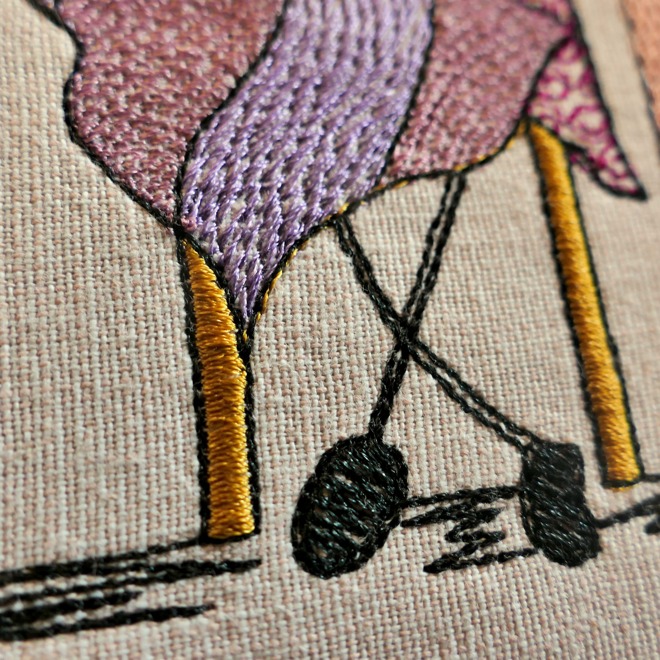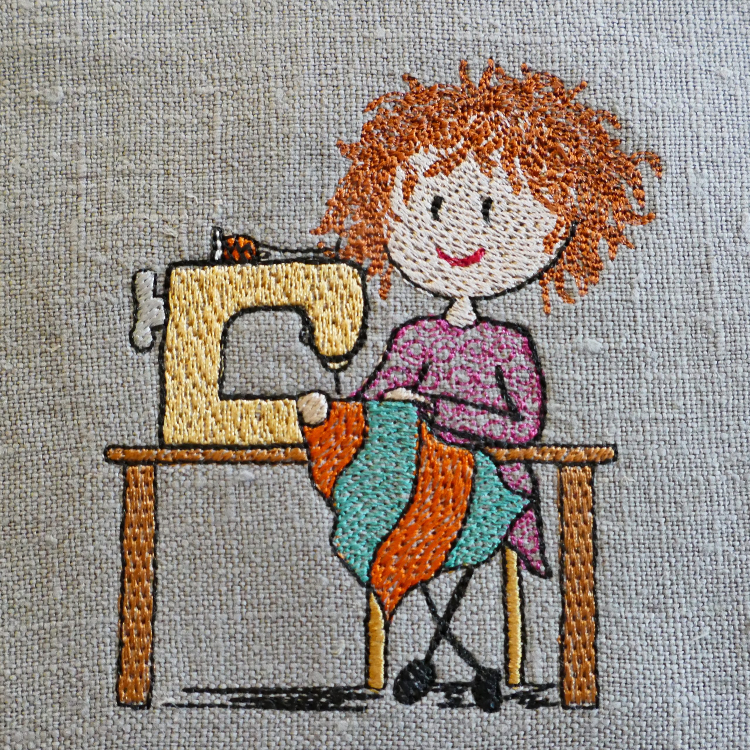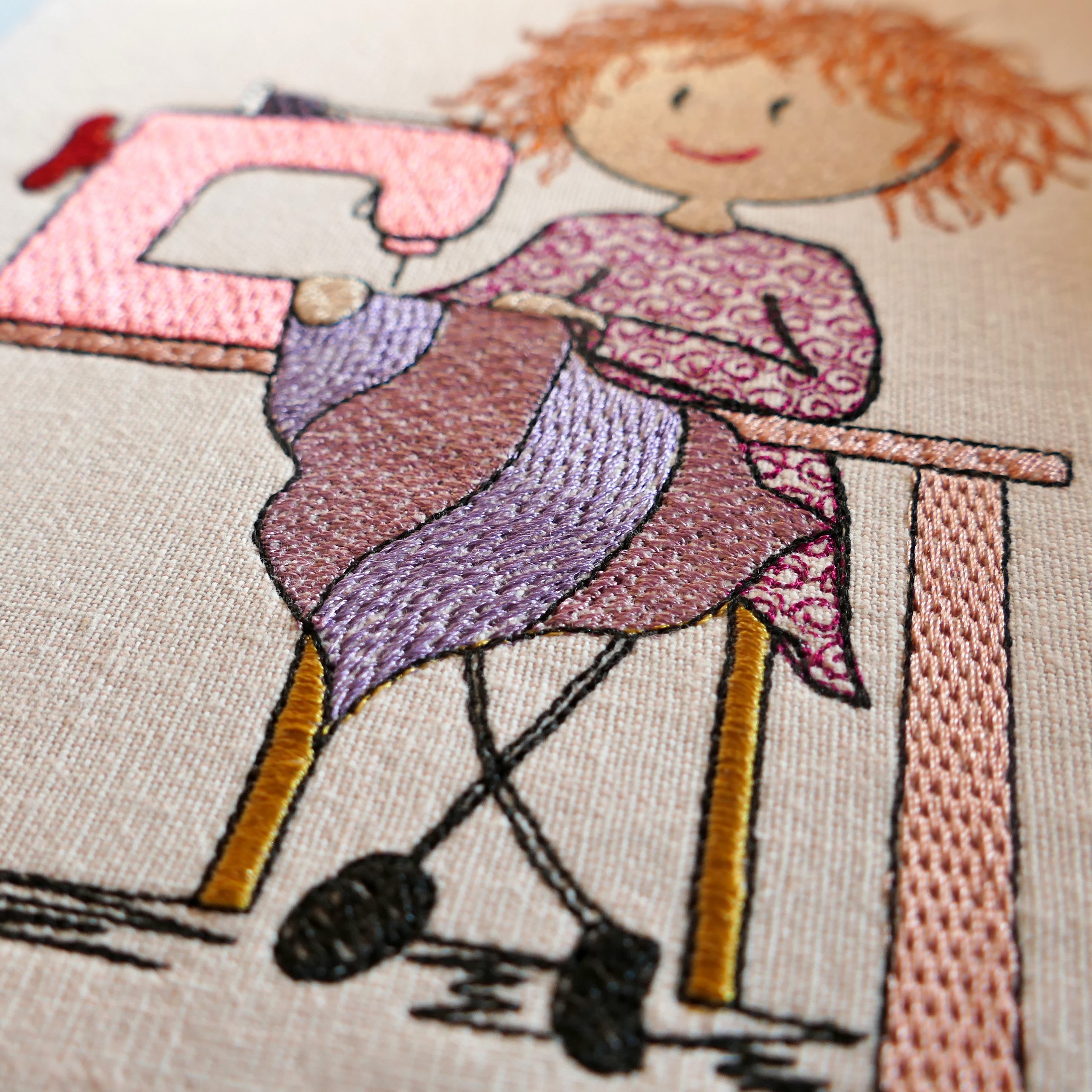 You can get this enchanting motif with Lilly at her sewing machine in two different sizes – please choose the right one for your embroidery hoop. Due to the looser stitching, the fabric shows through the motif again and again – an absolute eye-catcher!